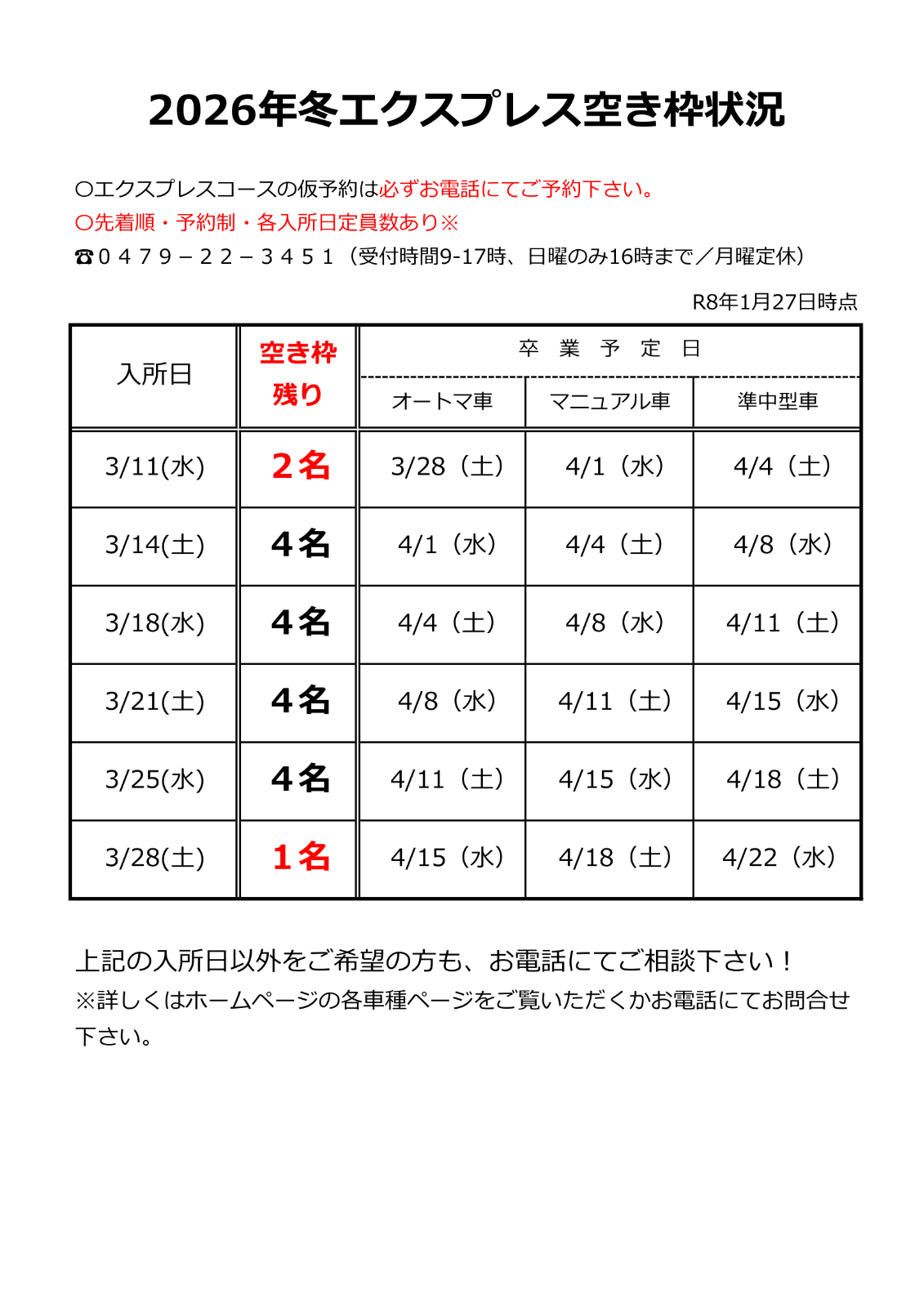 エクスプレス(短期集中)コース、まだまだ仮予約受付中です!!