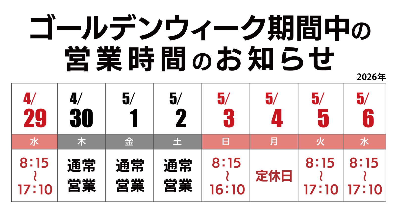 弊社のゴールデンウィーク期間中の営業時間について、下記のとおりご案内いたします。